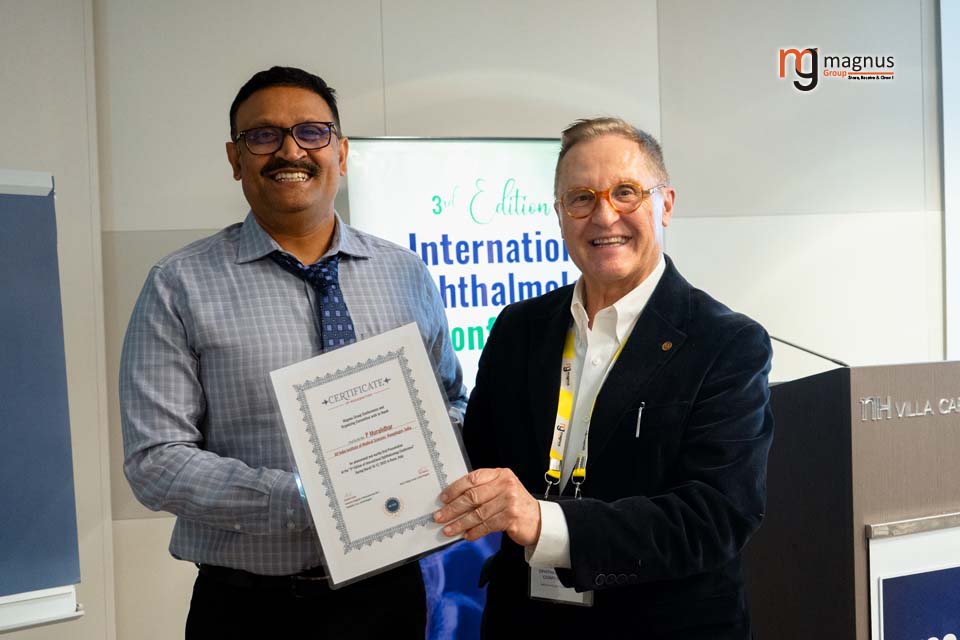 Pio Conti Felicitating Muralidhar With Presentation Certificate